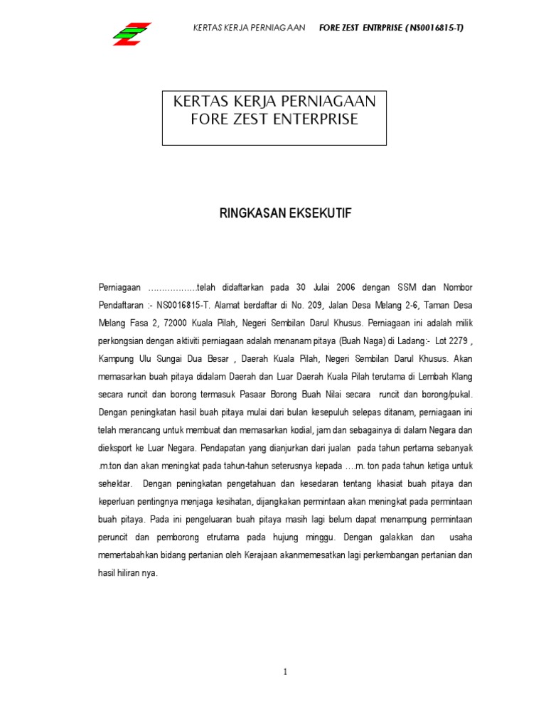 Kertas Kerja Rancangan Perniagaan Buah Naga Pdf